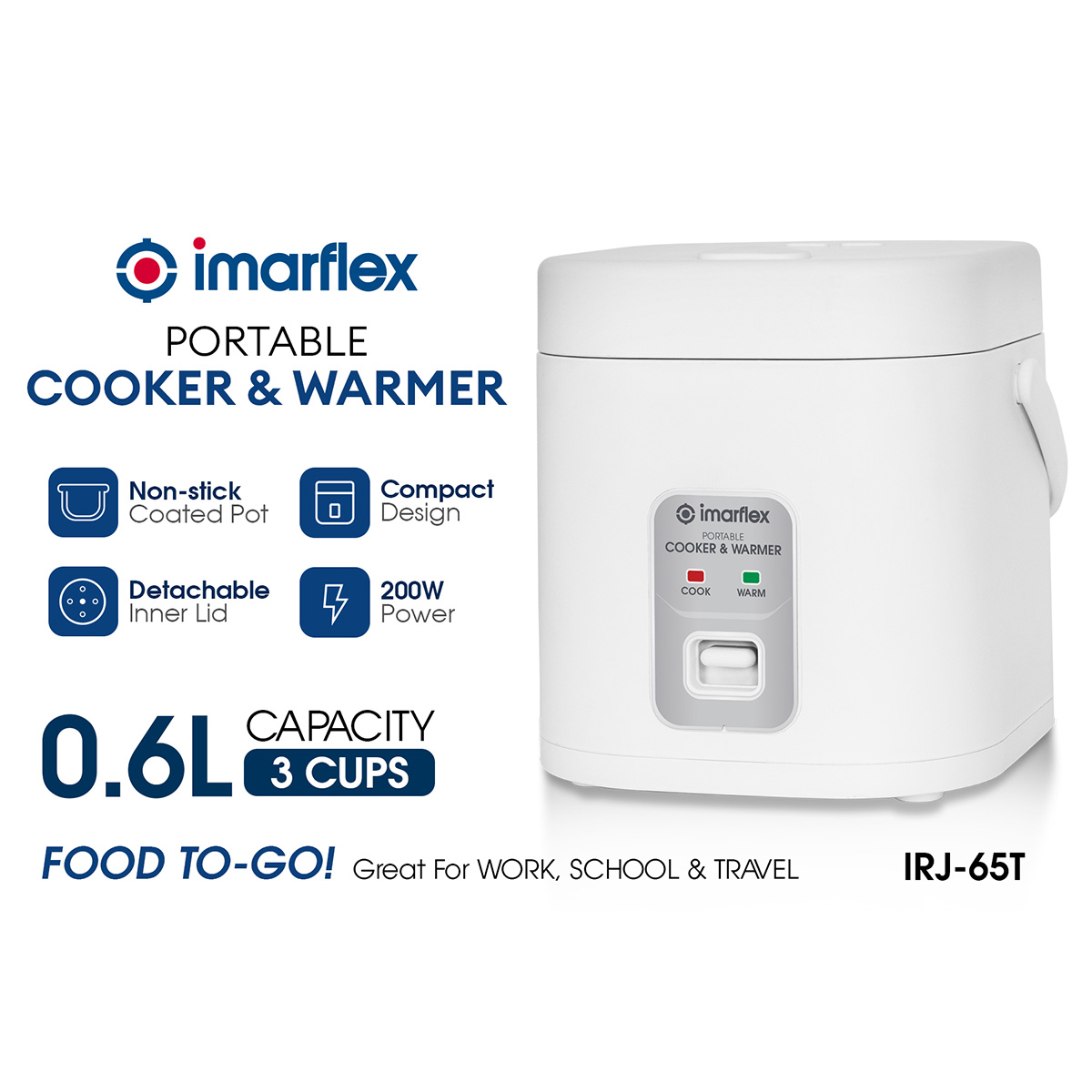 Home Shop Cooking Appliances Imarflex Portable Rice Cooker and Warmer - 0.6L (IRJ-65T)